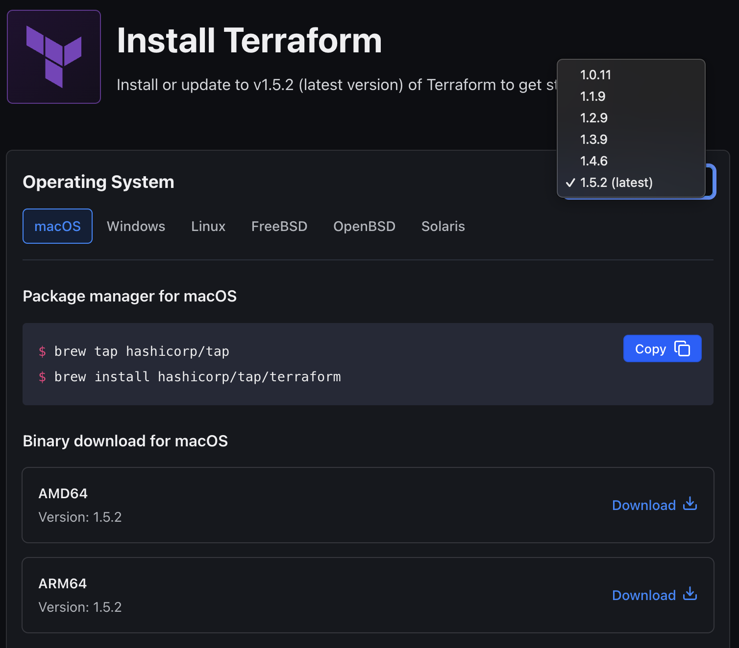 - https://developer.hashicorp.com/terraform/downloads 이동