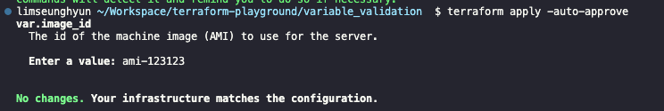 - 선언되는 방식에 따라 변수의 우선순위가 있으므로, 적절히 사용해 로컬 환경과 빌드 서버 환경에서의 정의를 다르게 하거나, 프로비저닝 파이프라인을 구성하는 경우 외부 값을 변수에 지정할 수 있다.