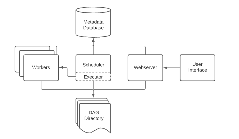 - Metadata Database에서 메타 정보를 가지고 있으므로, Webserver와 Scheduler가 메타 정보를 읽어온다.