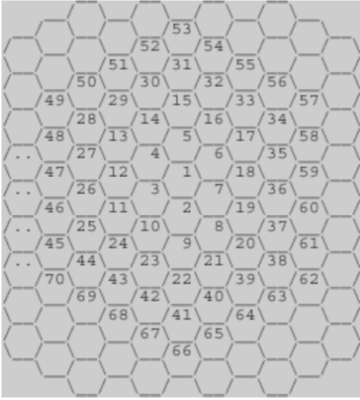 - 각 방을 숫자로 주소를 매긴 육각형 형태의 벌집이 있다.